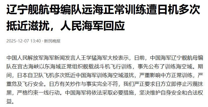 我们是在公海进行正常训练,并且提前通过国际海事组织发布了公告,符合国际法的一切规定。反观日本,他们的战机是“不速之客”,是“危险侵入者”。